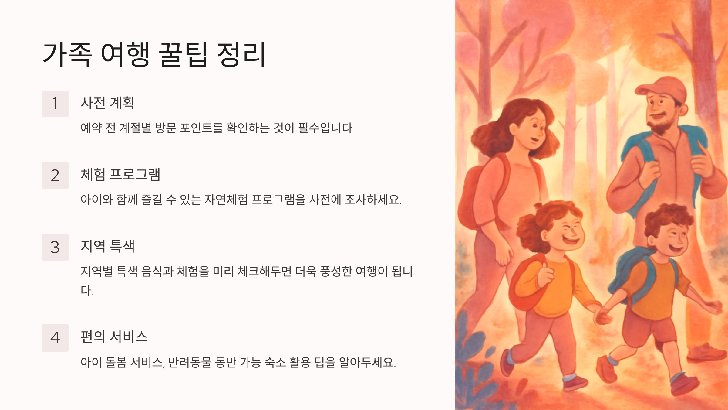 가족 여행은 준비가 반이에요. 잘 준비하면 여행 내내 웃음꽃이 피고, 준비가 부족하면 작은 변수에도 스트레스를 받기 쉽죠. 그래서 여기, 가족 모두가 만족하는 힐링 여행을 위한 실전 꿀팁들을 정리해봤어요. 📌