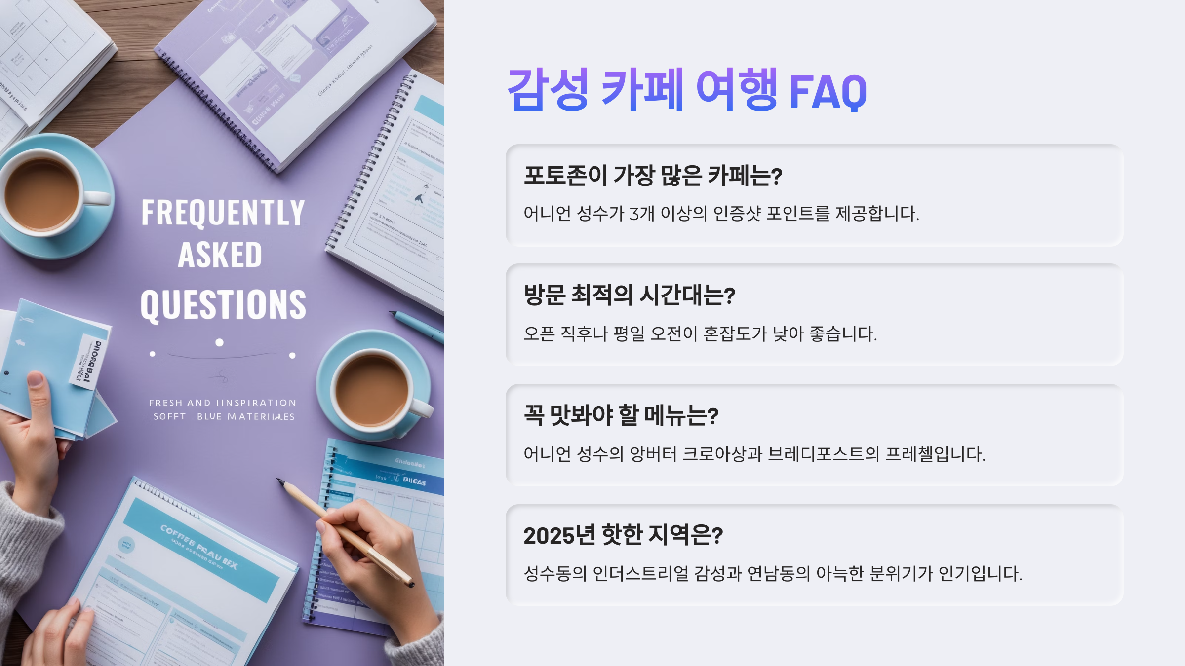 제가 생각했을 때 이런 감성 카페는 단순한 트렌드가 아닌, 자기 자신을 회복하는 통로 같아요. 정돈된 인테리어와 정성 담긴 디저트, 그리고 무엇보다 '공간'이 주는 위로는 오래도록 기억에 남는답니다.