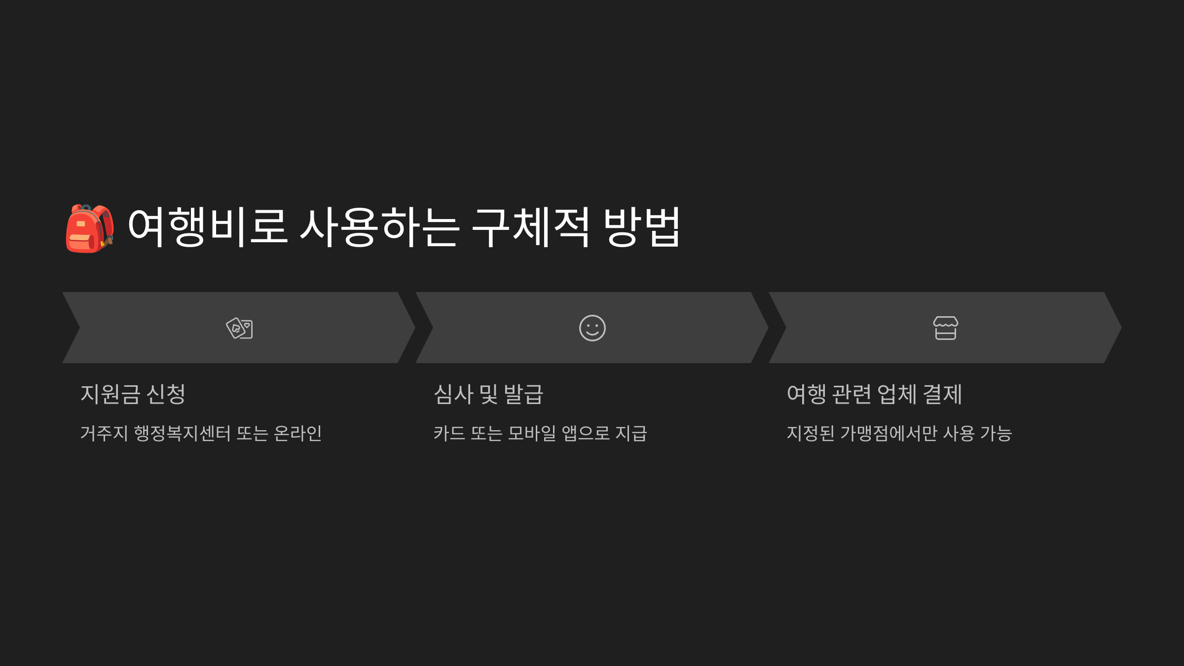 또한 일부 지자체는 지원금이 카드 포인트나 지역 화폐로 지급되기 때문에 그 안에서 지정된 항목(숙박, 체험, 교통 등)에 자동 적용되는 시스템을 운영 중이에요. 복잡한 절차 없이 체크카드처럼 사용 가능해요.