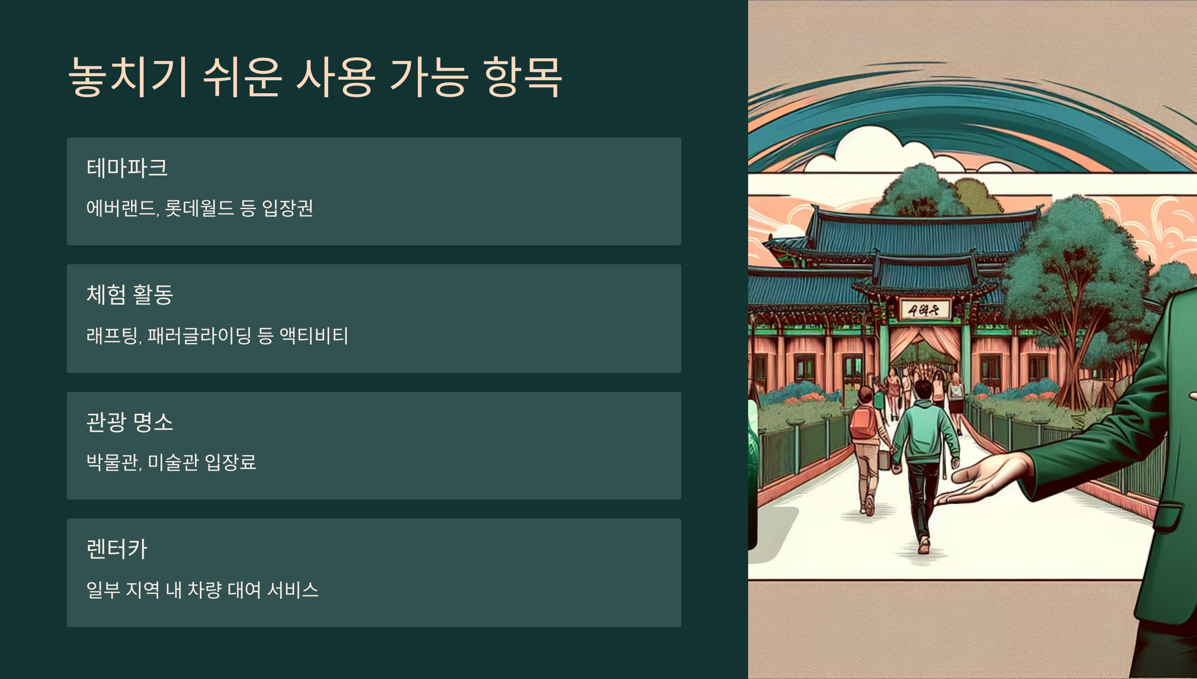 | 현금 절약 | 여행비 부담 20~30% 절감 |
