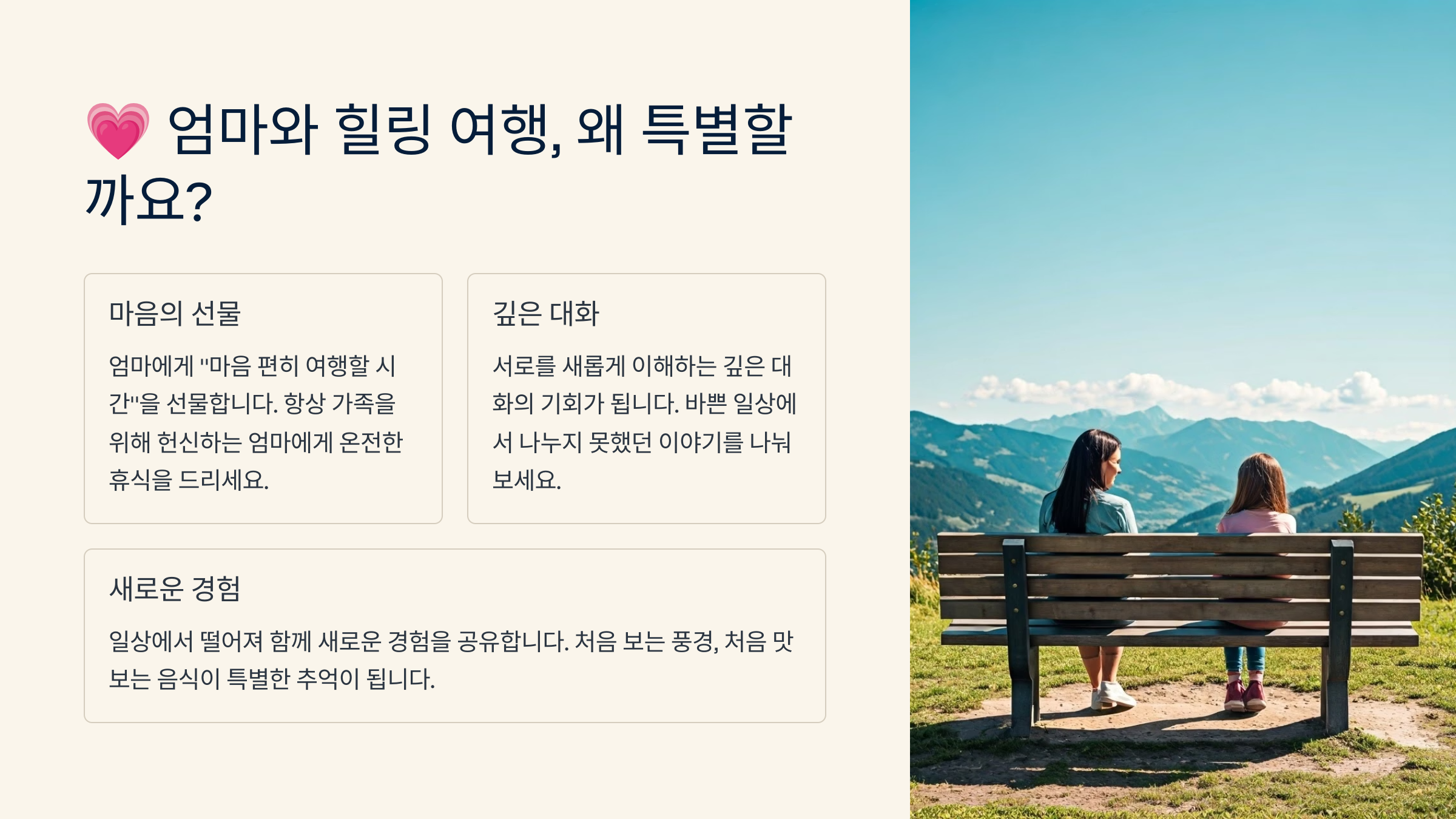 💗 엄마와 힐링 여행, 왜 특별할까요?