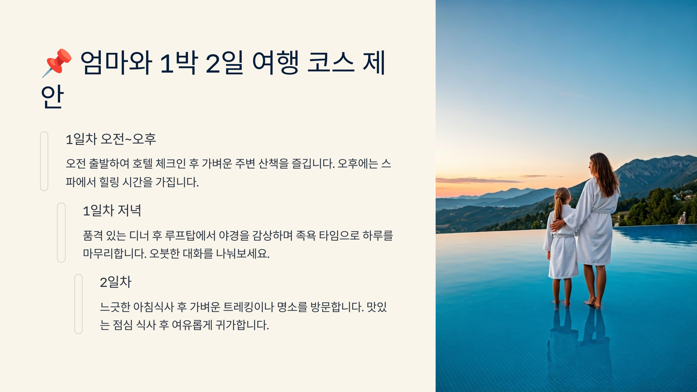 🗺️ 엄마와 1박 2일 힐링 코스 요약표