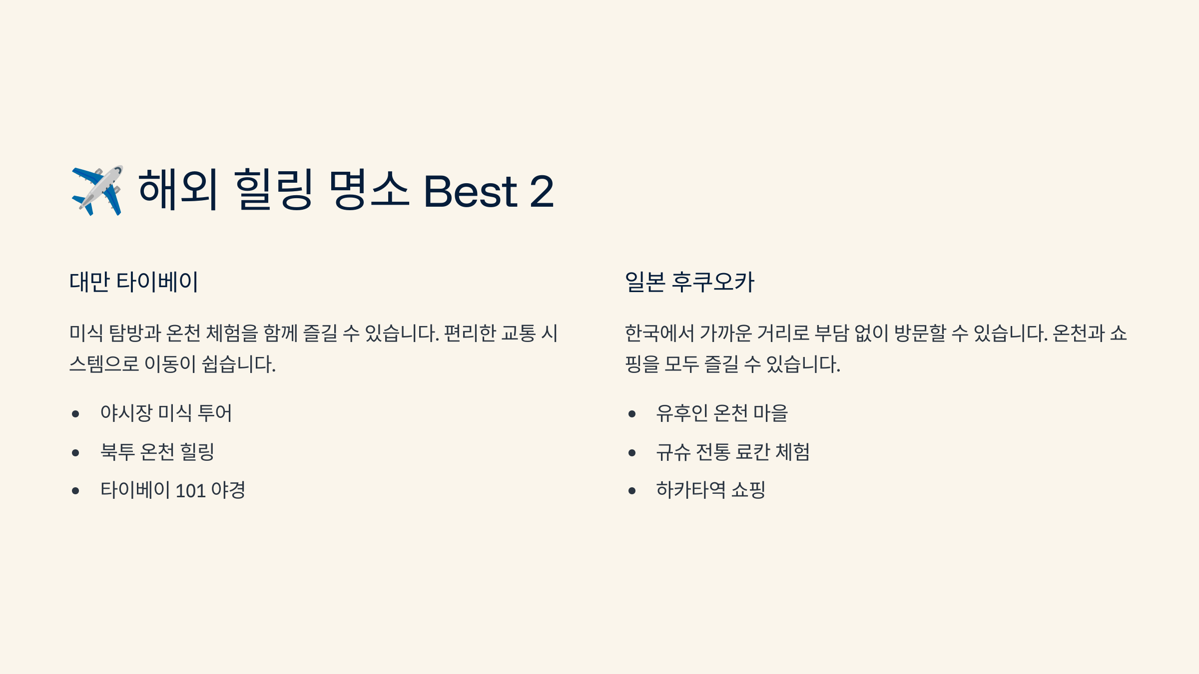 🌏 엄마와 가기 좋은 해외 힐링지 비교