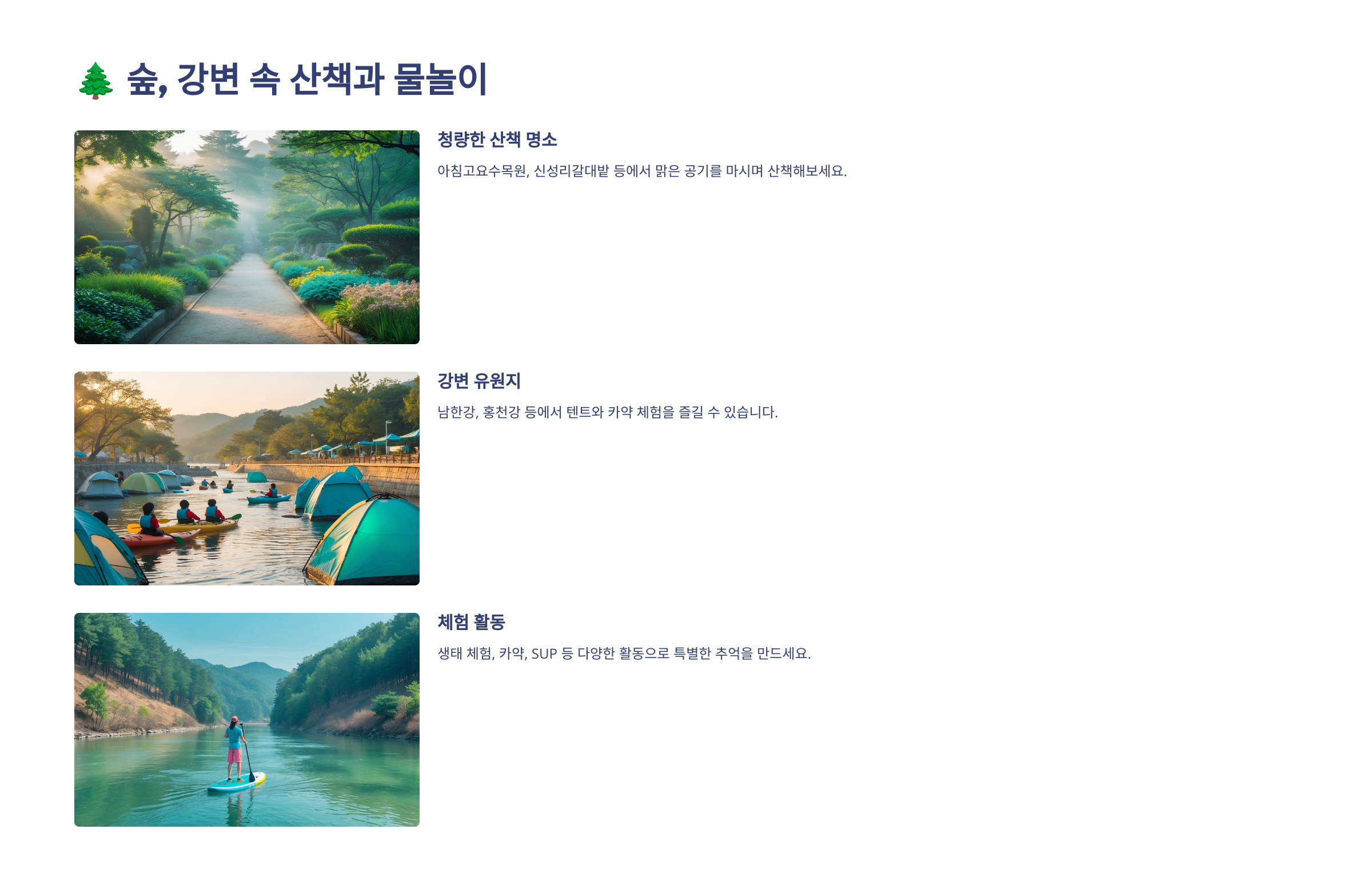 강변 물놀이는 단순한 피서지를 넘어서, 여유롭고 특별한 여름의 추억을 만들어줘요. 강변 소풍과 물놀이를 한 번에 즐기며 자연 속에서만 느낄 수 있는 힐링을 경험해봐요! 🚣♂️