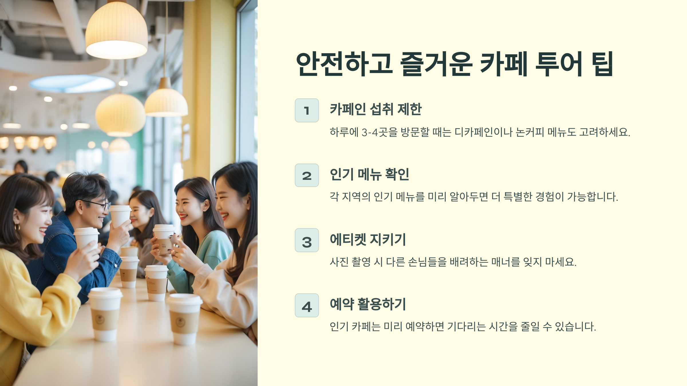 💡 안전하고 즐거운 카페 투어 팁