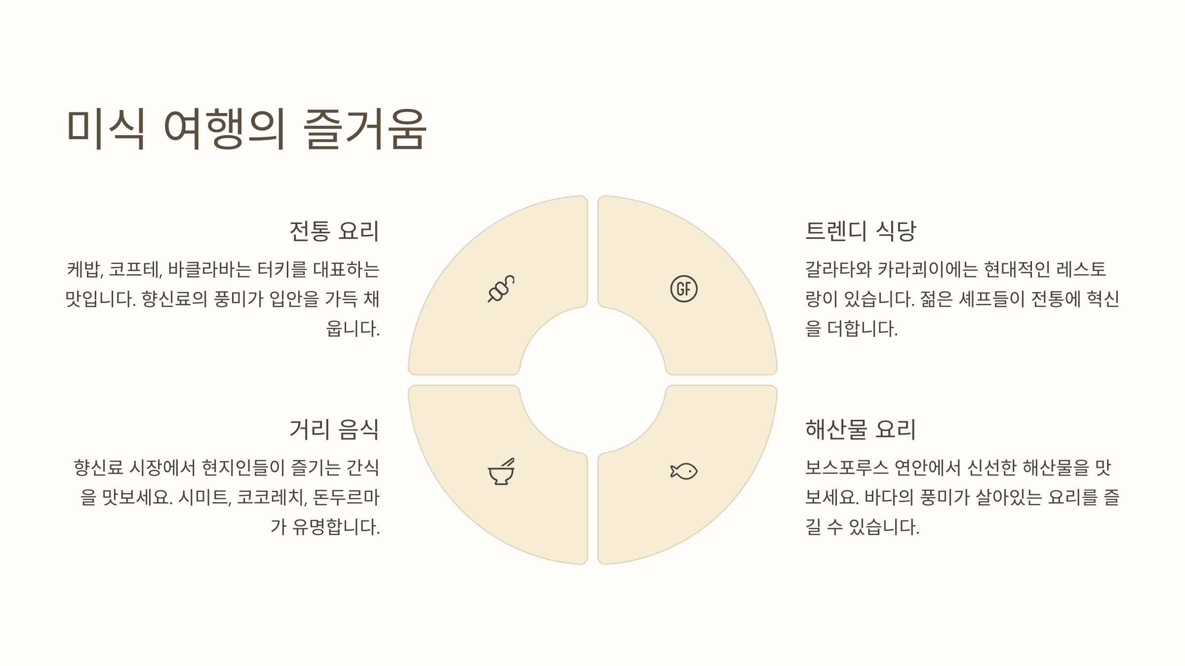 음식 여행은 단순히 맛을 넘어 문화와 역사를 함께 느끼는 여정이에요. 이스탄불에서의 한 끼는 단순한 식사가 아니라, 오랜 전통과 이야기가 담긴 문화의 향연이랍니다.
