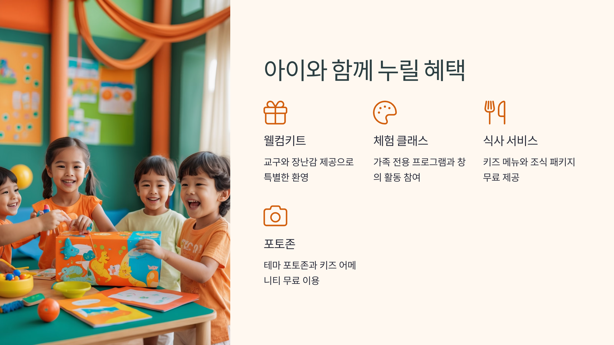 이런 다양한 혜택을 누리며, 모두가 만족하는 여행을 완성해보세요! 가족 모두의 얼굴에 웃음꽃이 피는 시간이에요 🌈
