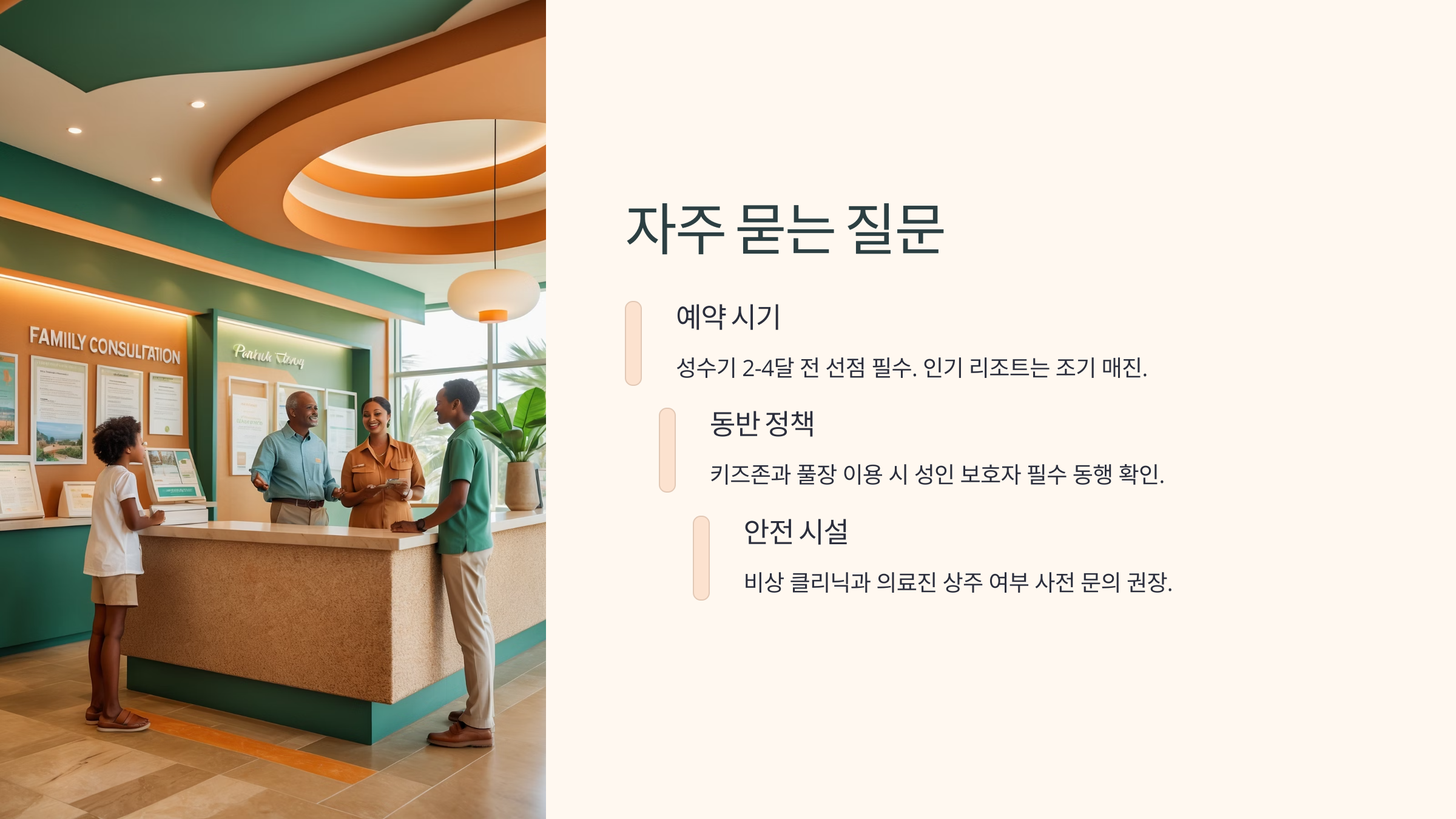 리조트를 예약할 때는 단순히 사진만 보고 결정하면 실망할 수도 있어요. 가족 단위, 특히 아이와 함께하는 여행이라면 더 꼼꼼히 따져봐야 해요.