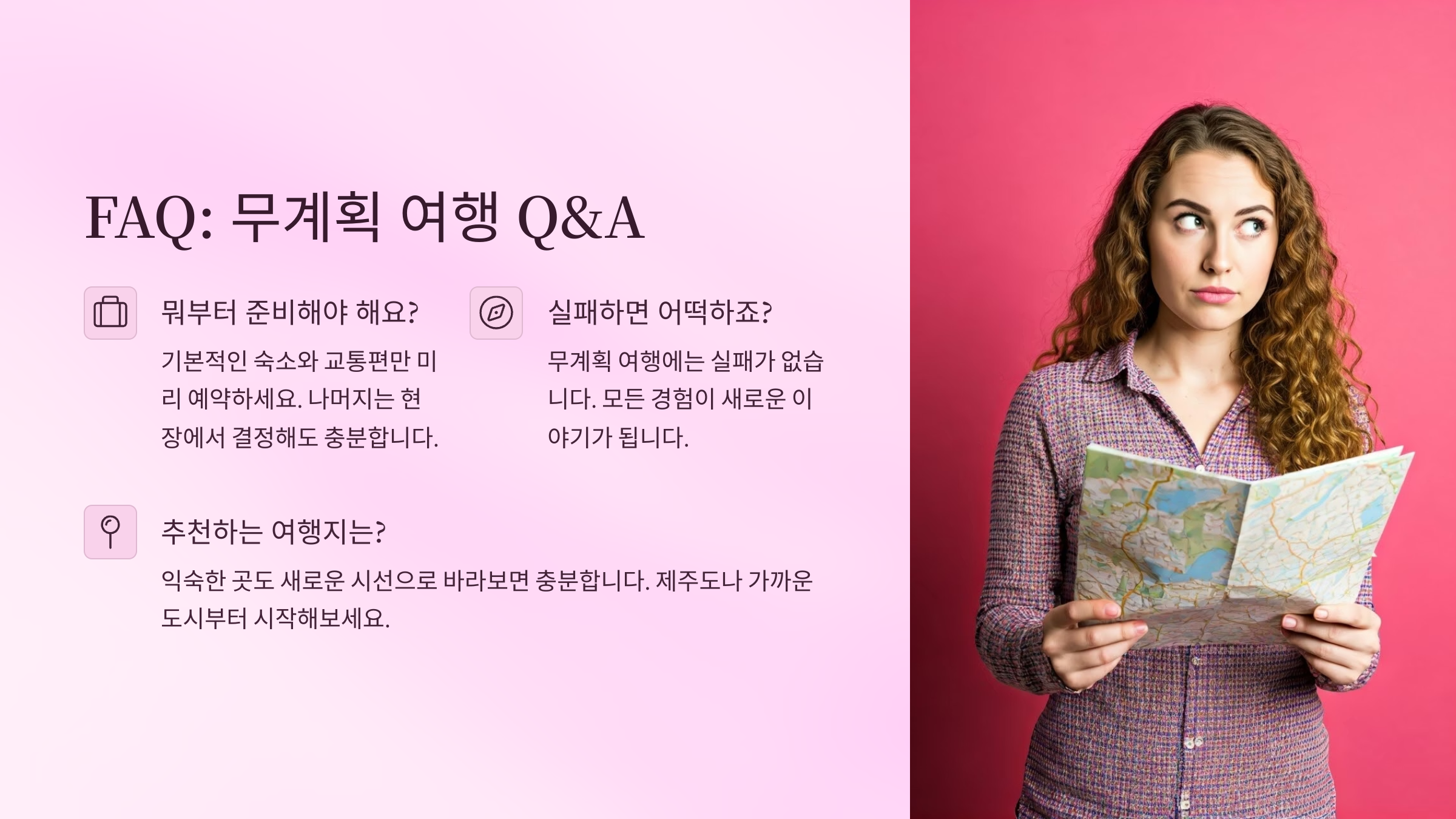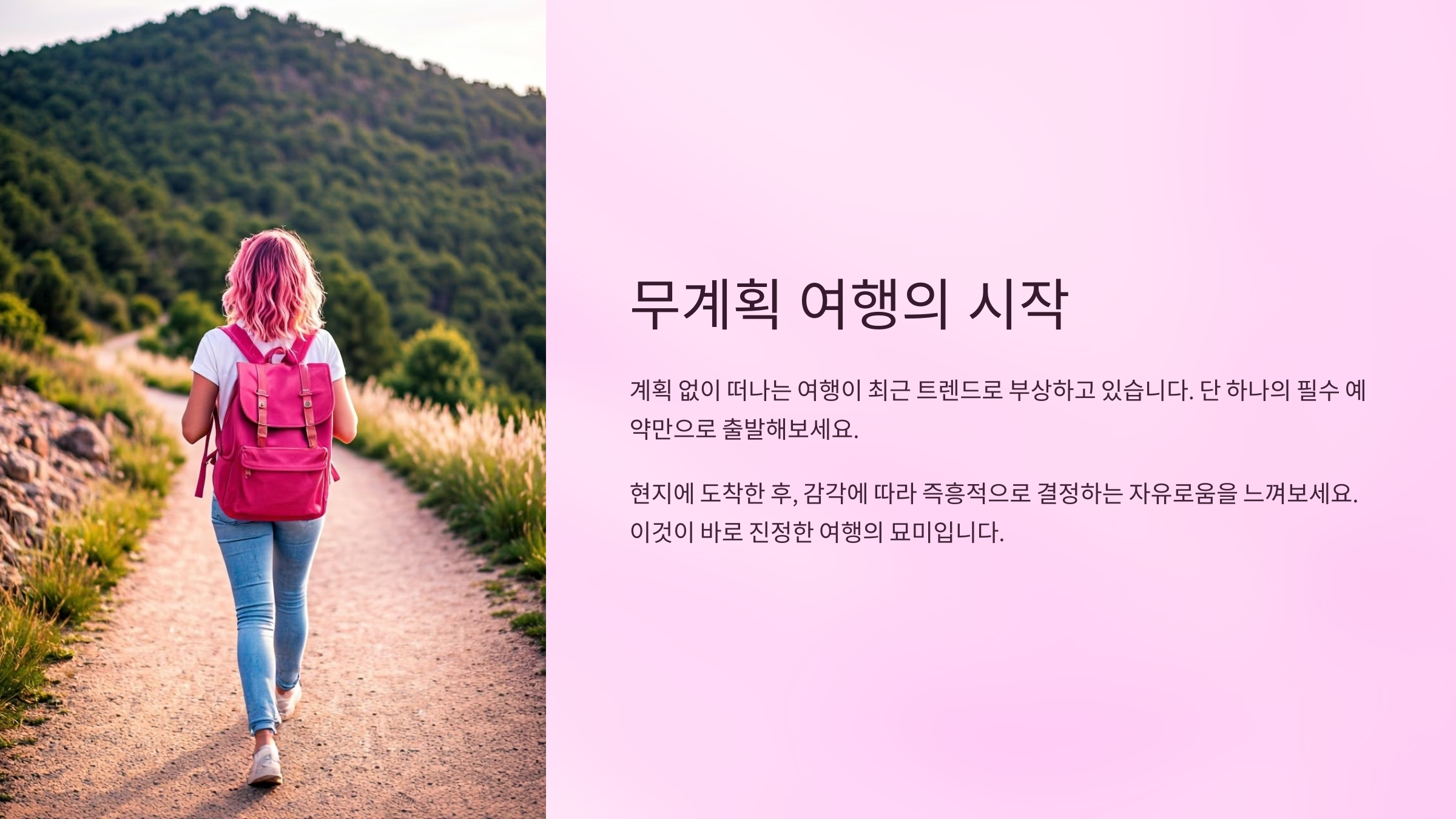 무계획 여행은 계획된 인생에 쉼표를 찍어줬고, 그 쉼표 덕분에 문장이 살아났어요.