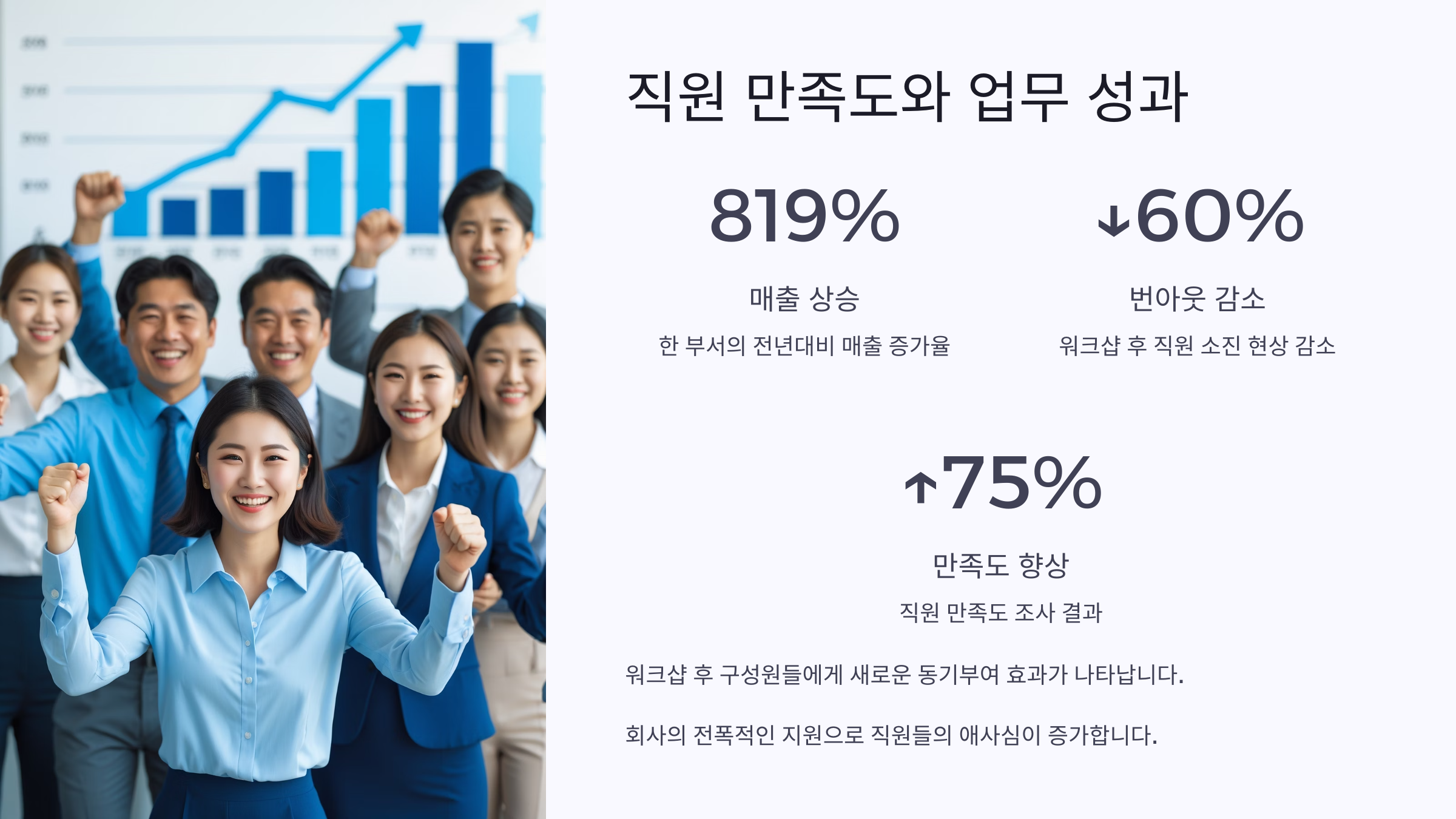 | 직원 만족도 | 70% | 90% |