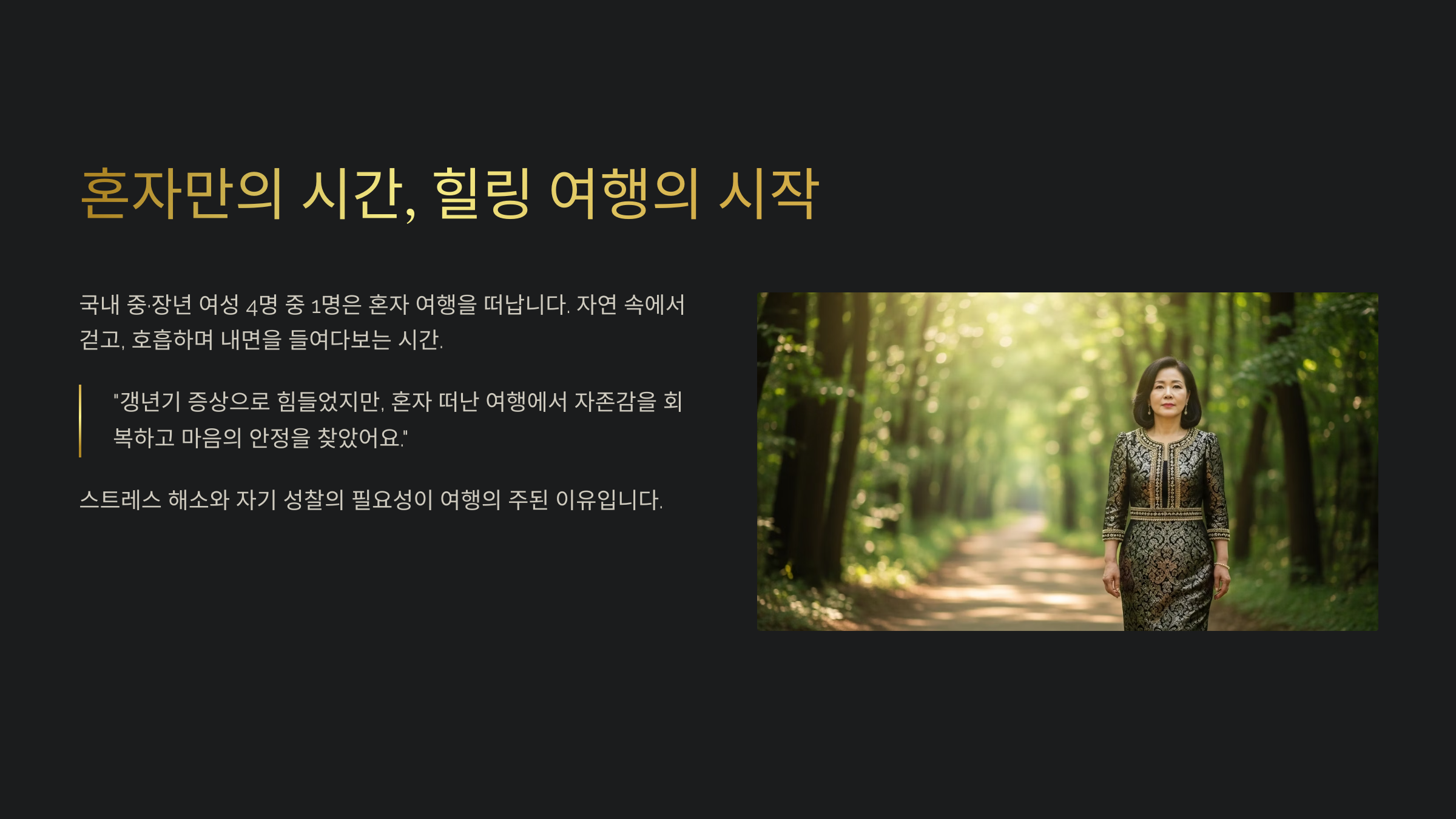 다음 문단에서는 그 여행이 어떻게 준비되었는지, 어떤 마음으로 출발했는지를 공유할게요. 갱년기의 답답함, 혼자서도 극복할 수 있어요 💪
