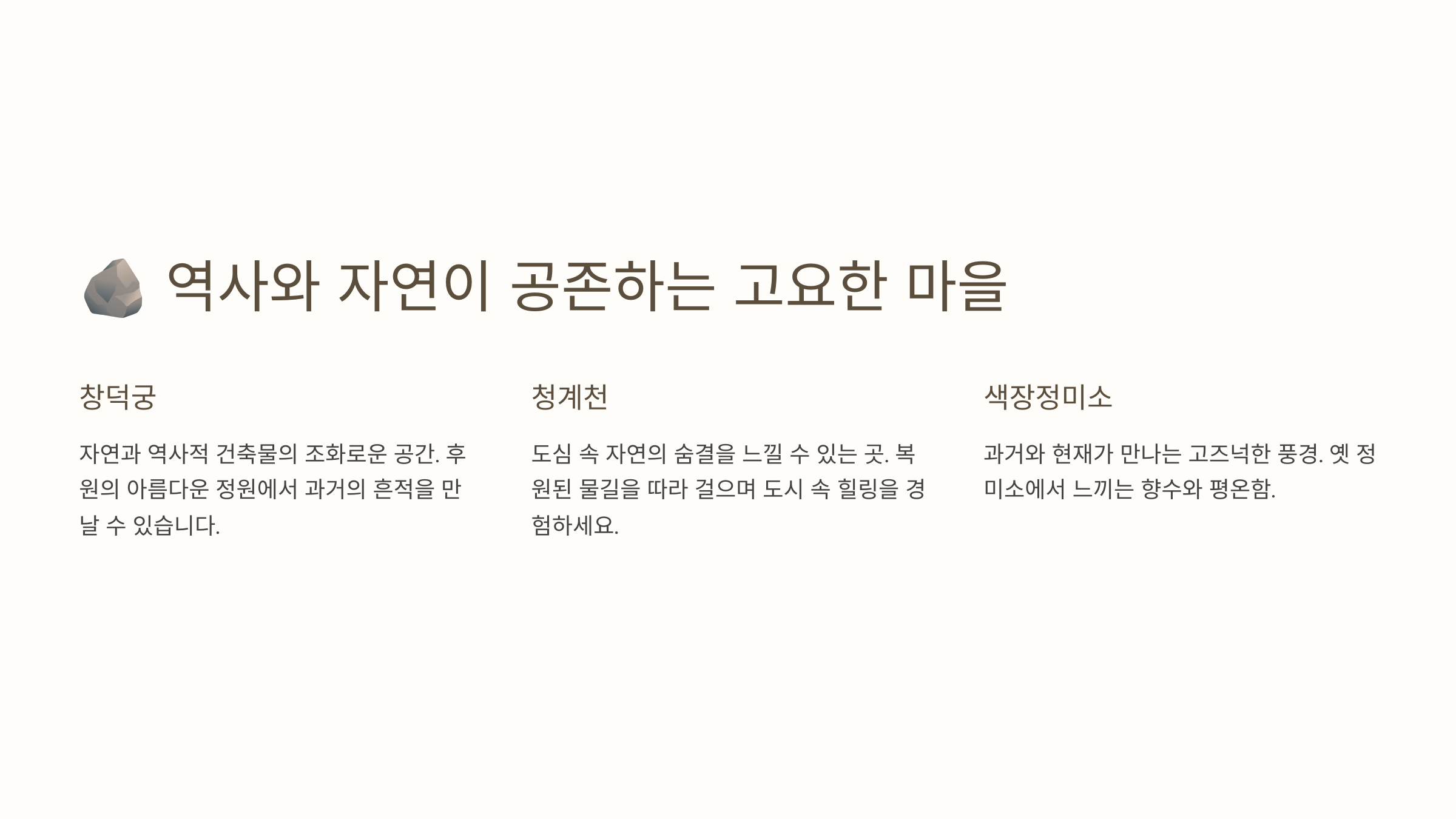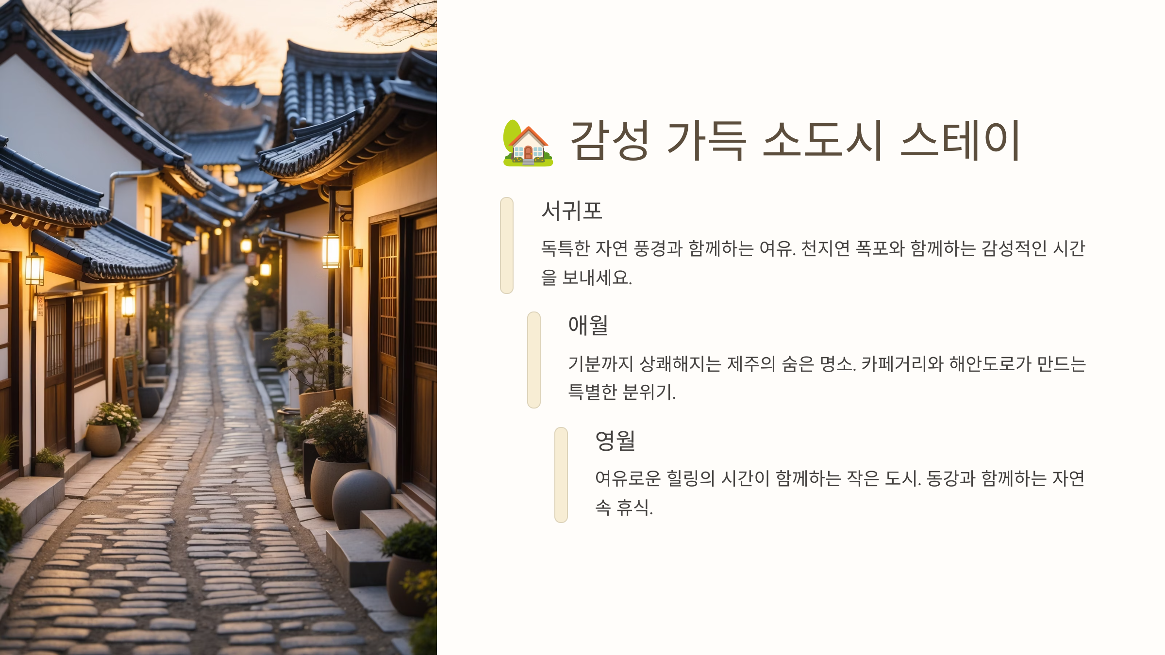 소도시의 매력은 조용함뿐 아니라, 느린 시간 속에서 나 자신과 더 가까워지는 거예요 🕊️