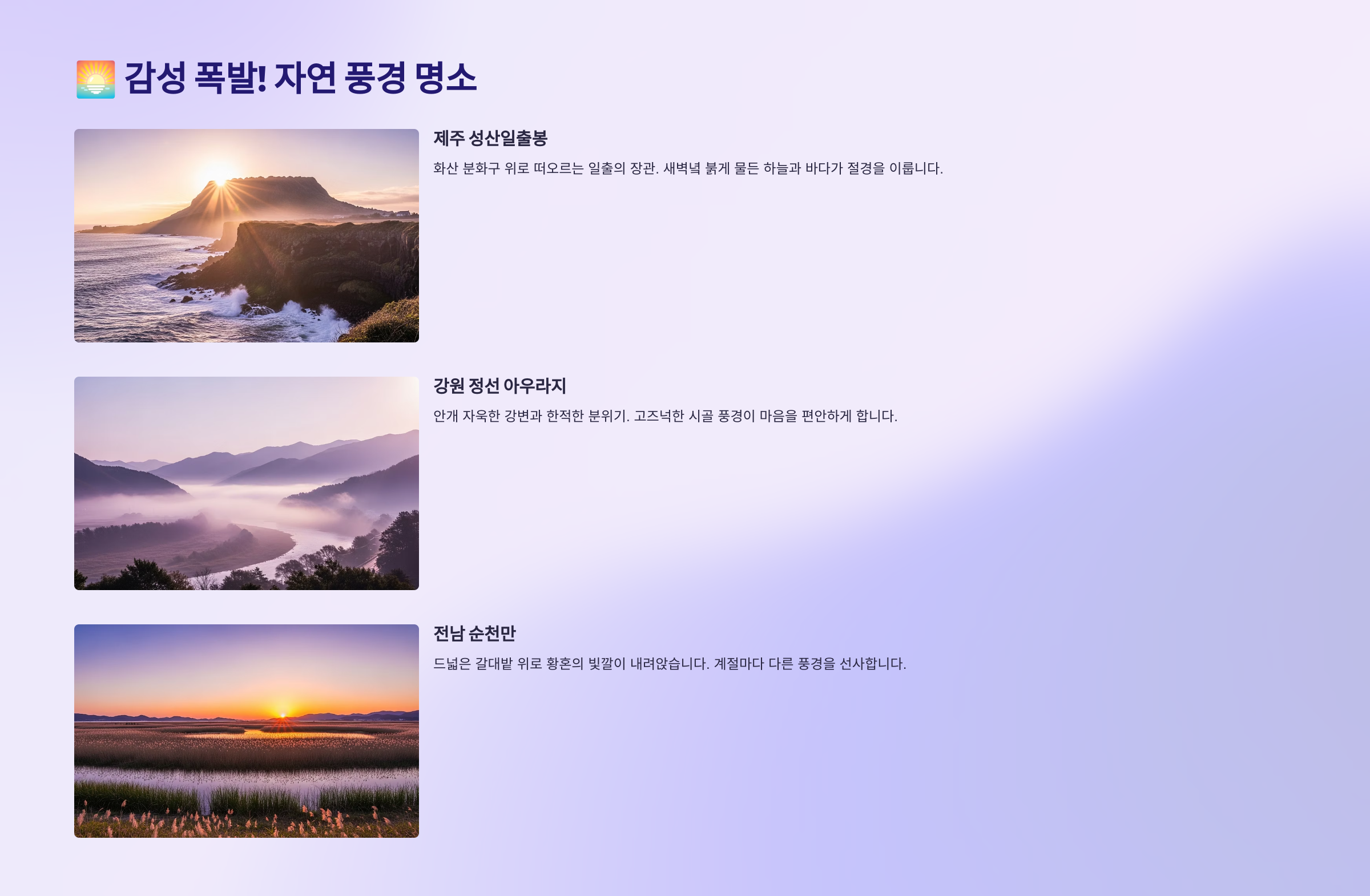 내가 생각했을 때 이 자연 명소들을 직접 경험하고 사진으로 남긴다면, 단순한 여행이 아니라 인생의 한 장면을 기록하는 특별한 시간이 될 거예요. 📸