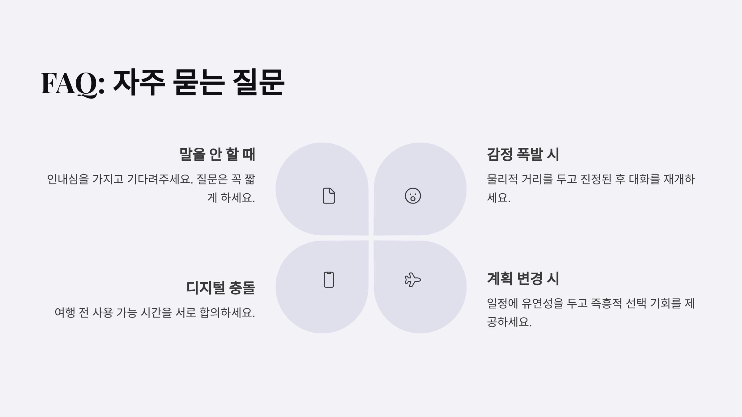 | 해결보다 공감 | “힘들었겠네” | 충고 모드 금지 |