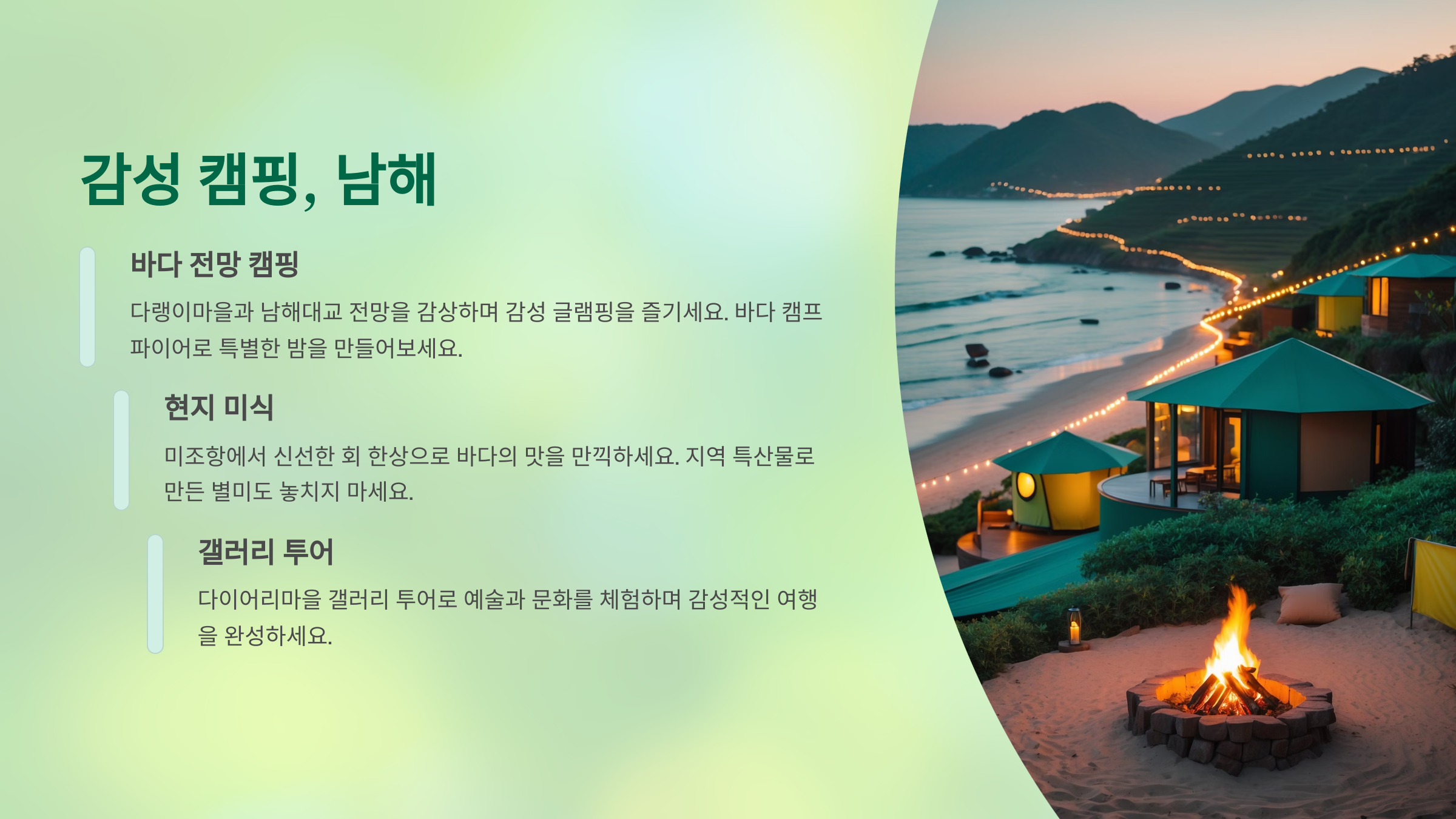 🔥 감성 캠핑, 남해