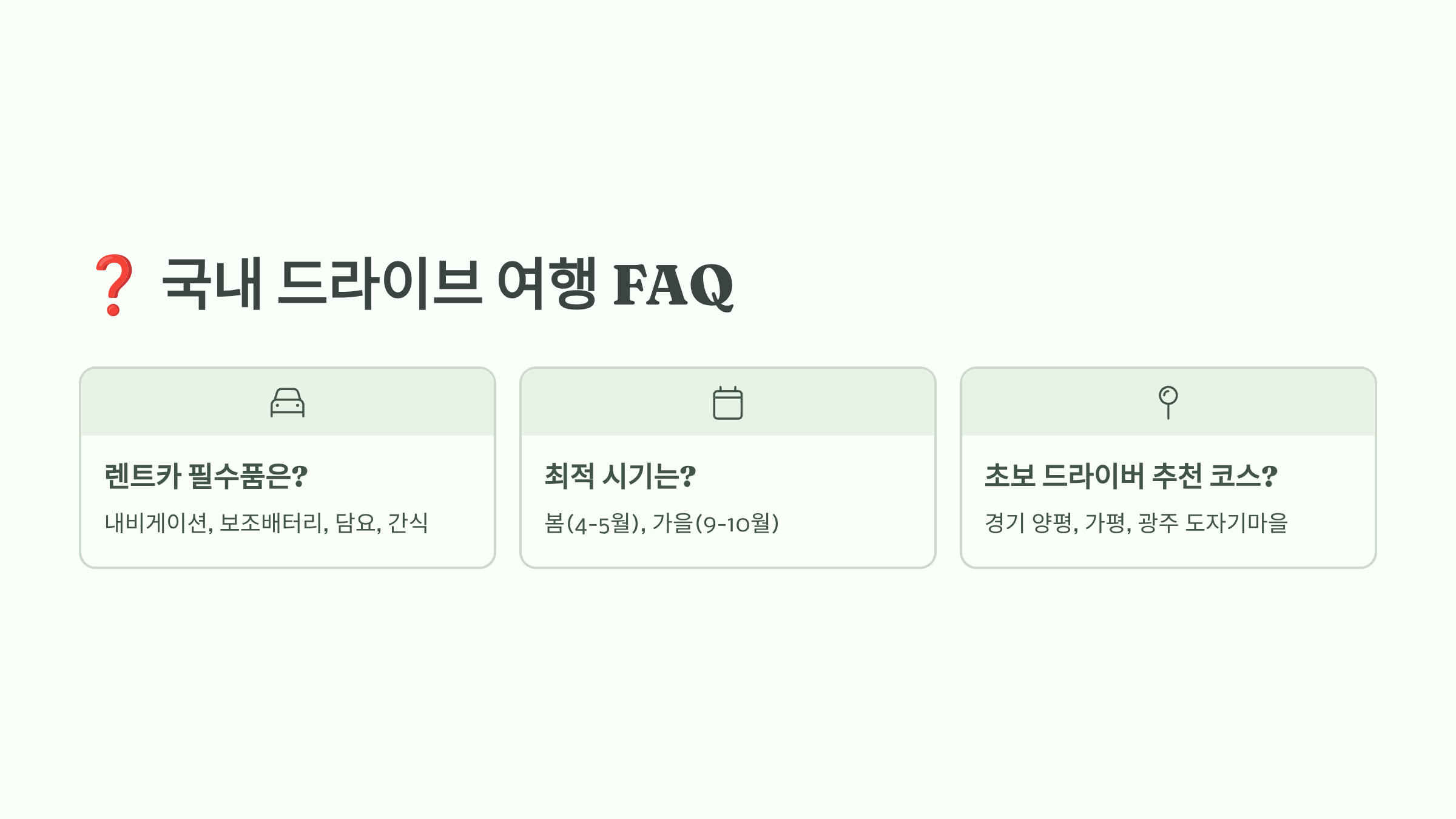 간단한 간식, 물, 보조 의자나 담요도 준비하면 드라이브 중간에 잠시 쉬어가는 맛이 생겨요. 준비가 잘 되어 있으면 여행의 여유도 훨씬 넉넉해져요 🍪
