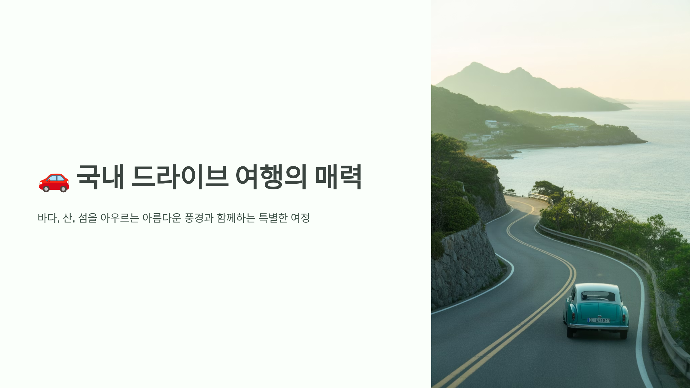 드라이브 여행이 다른 여행과 가장 차별화되는 점은 '이동 자체가 여행의 핵심'이 된다는 점이에요. 목적지보다 그곳까지 가는 길이 더 기억에 남는 경우도 많죠. 자연의 변화무쌍한 풍경, 눈앞에서 변하는 하늘빛, 도로의 굽이진 곡선 하나하나가 특별한 여행의 한 장면이 돼요.