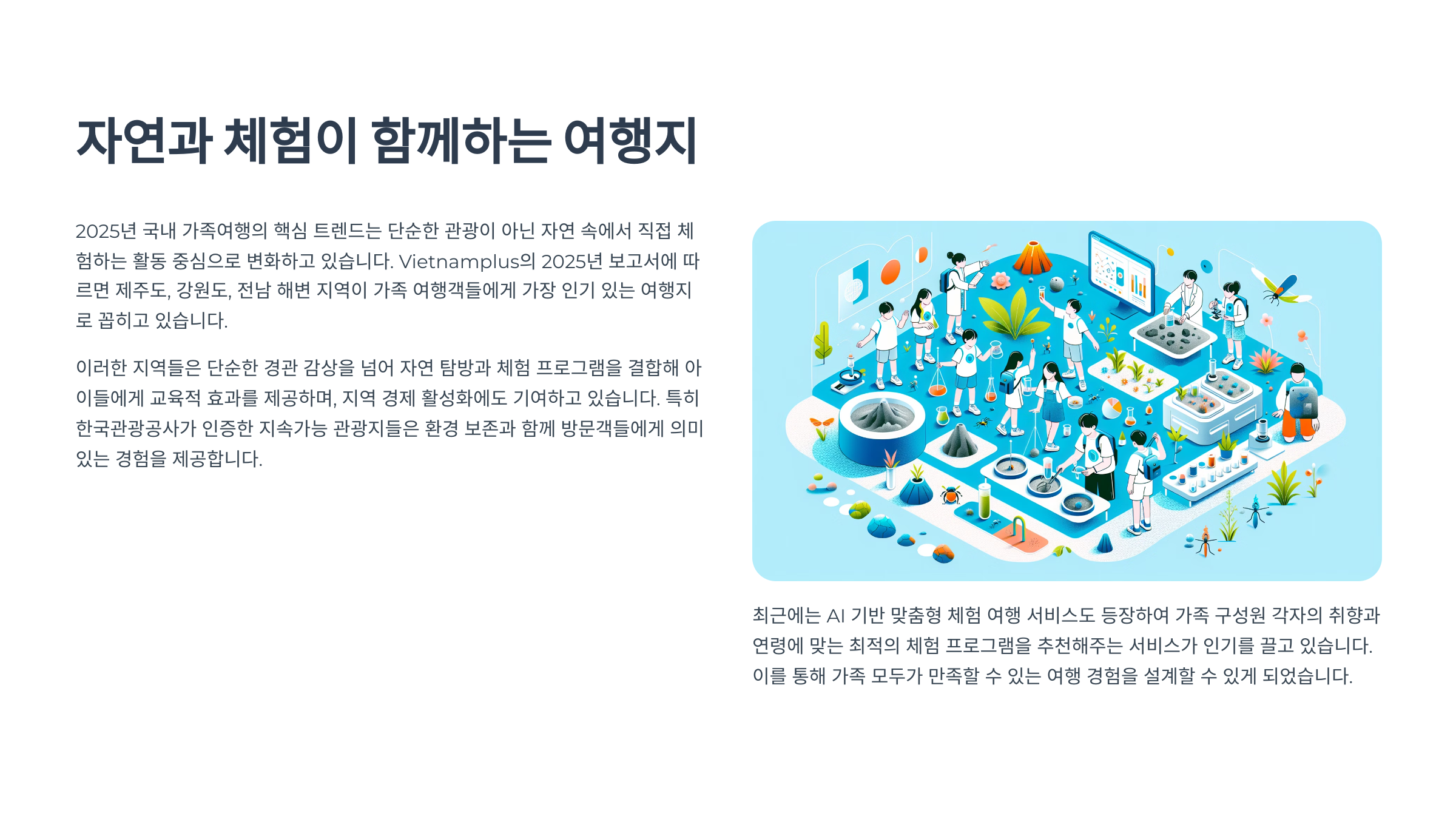 | 체험형 여행 | 자연과 놀이 결합된 콘텐츠 인기 |