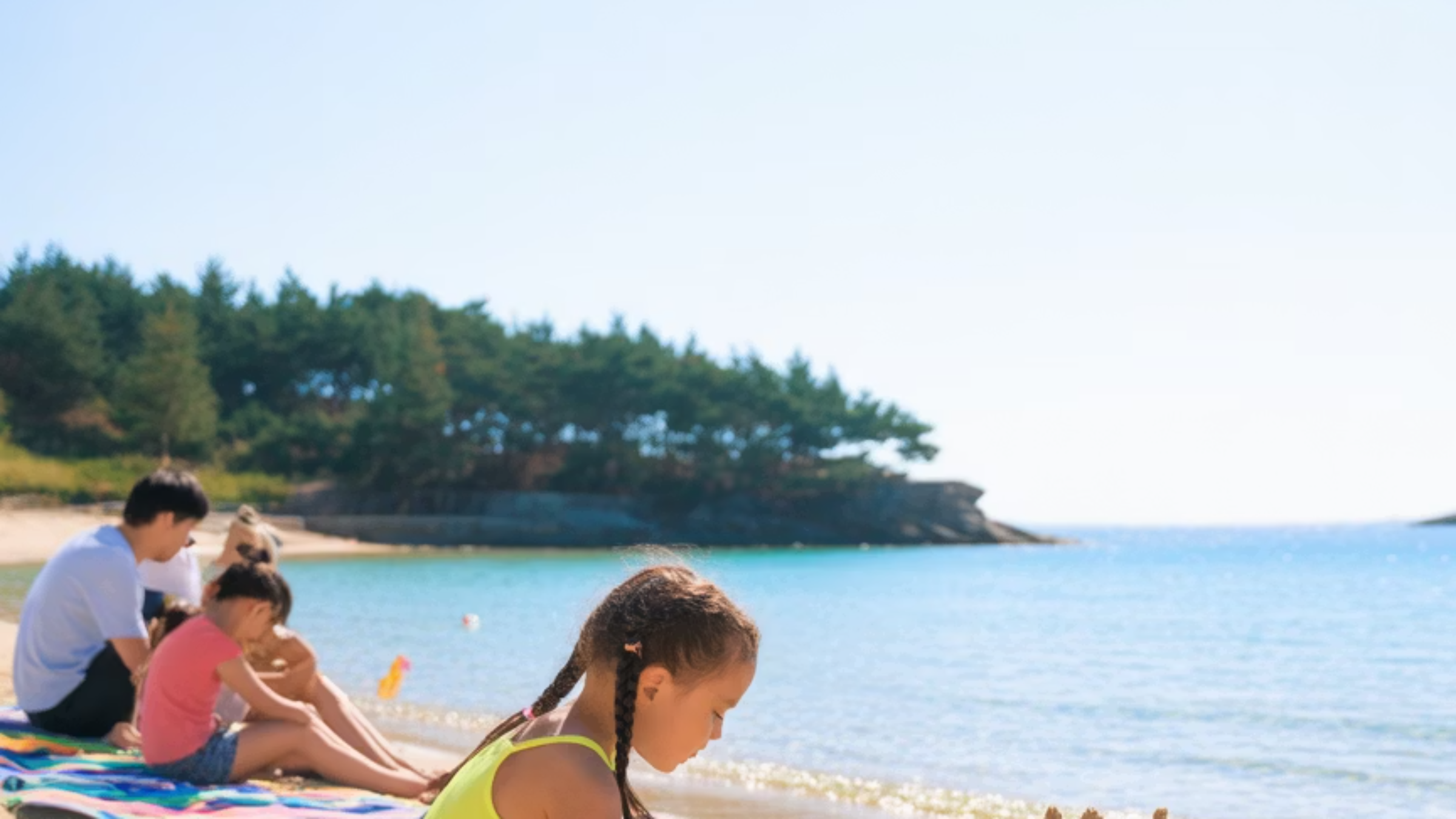이곳은 잔잔한 파도 덕분에 유아를 동반한 가족들도 안심하고 물놀이를 즐길 수 있어요. 해변을 따라 펼쳐진 솔숲 캠핑장도 인기가 높고, 여름에는 조용한 힐링 캠프 분위기가 나요.